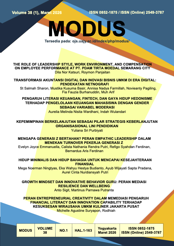 Welcome to the MODUS Journal Volume 38 Issue 1 March 2026. This edition features eight notable articles of interest to researchers, educators, and practitioners in business, management, economics, accounting, finance, tourism management, and entrepreneurship. Authors of the contributions to this current issue live and work in many different universities. The authors of this issue come from various universities spread throughout Indonesia.