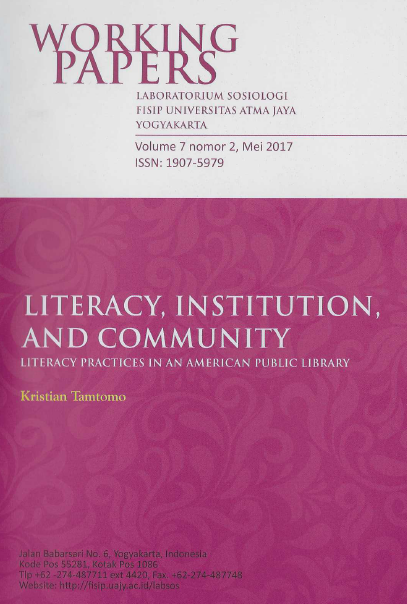 In understanding literacy as a social practice, it is important to explore the social contexts surrounding the enactment and sustainment of literacy activities. One important aspect of the social context of literacy is what Long (1993) calls as the "infrastructure of literacy." This covers various institutions and actors that support or act as "sponsors of literacy" (Brandt 1999) at the group or community level. In the context of American society, in addition to schools, public libraries have historically taken the mandate of being a key institution that acts as an infrastructure and sponsor of literacy activities within the community (Harris 1975). As an institution that sponsors literacy, the library has a certain vision and mission about the kinds of literacy activities it would like to promote and the kinds of social effects these literacy activities should achieve. Nonetheless, as a space and context for literacy practices, the library also becomes a site for various types of literacy activities, each with their own social or personal purposes.