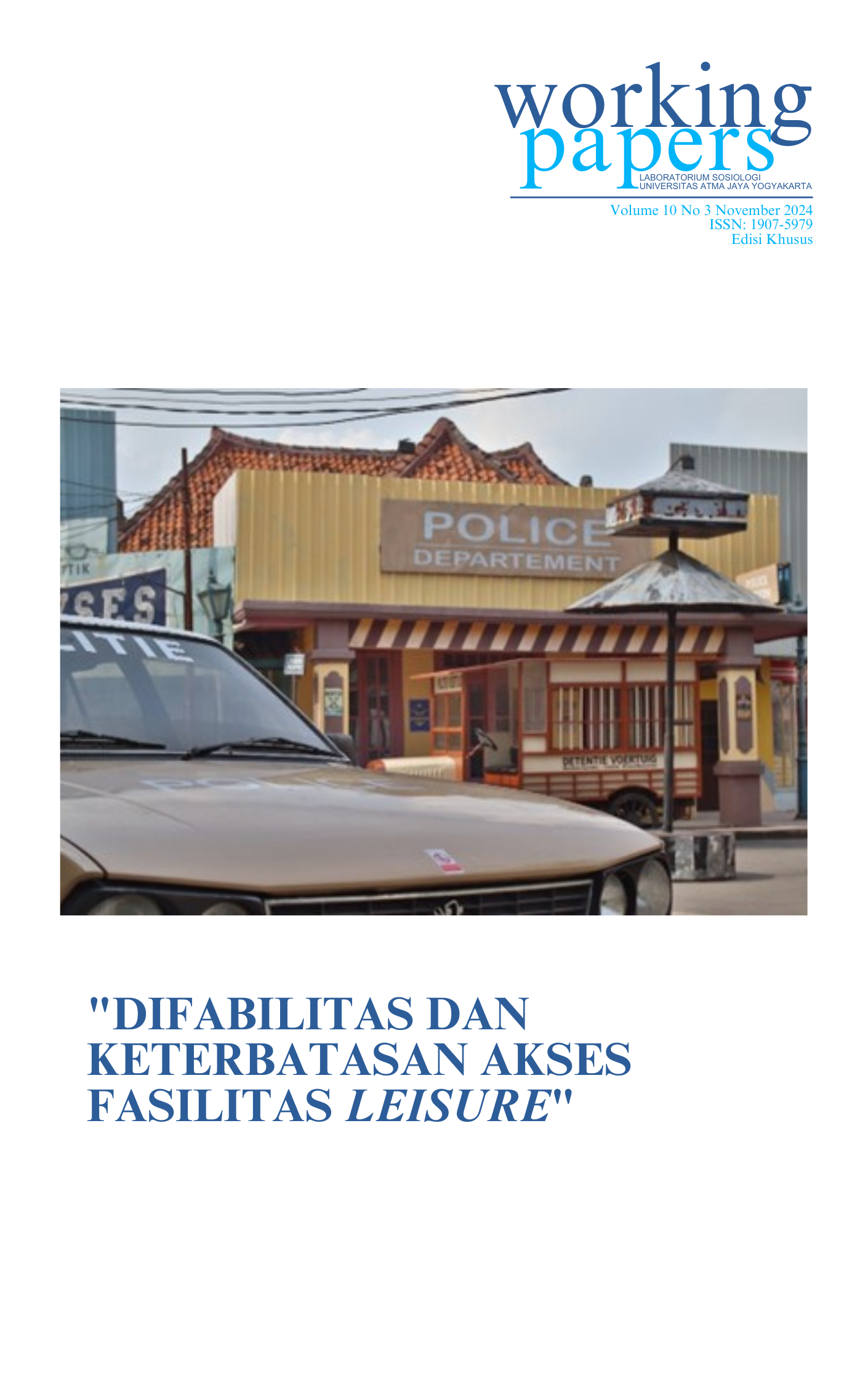 Akses bagi kelompok difabel sangat diperlukan dalam upaya untuk memberikan rekognisiyang layak terhadap kelompok difabel sebagai bagian dari entitas yang turut hidup bersamadalam ruang urban. Lebih lanjut, kelompok difabel juga perlu dikenali sebagai kelompok yangmemerlukan aktivitas waktu senggang (leisure), di mana aktivitas waktu senggang ini jugaturut berkontribusi terhadap pengalaman hidup sosial kelompok difabel. Karena itu,pembahasan mengenai akses bagi kelompok difabel hendaknya juga mencakup akses terhadapfasilitas bagi aktivitas waktu senggang. Dengan pertimbangan ini, Working PapersLaboratorium Sosiologi UAJY edisi ini akan menyajikan hasil observasi sederhana darimahasiswa Sosiologi UAJY pada Studio Alam Gamplong sebagai salah satu lokasi yang seringdijadikan tujuan bagi aktivitas waktu senggang. Diharapkan sajian visual dan tekstual dalamWorking Papers Laboratorium Sosiologi UAJY ini dapat memberikan sedikit kontribusi padaisu mengenai akses terhadap aktivitas waktu senggang bagi kelompok difabel di erakontemporer ini.